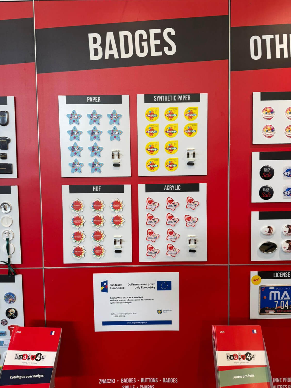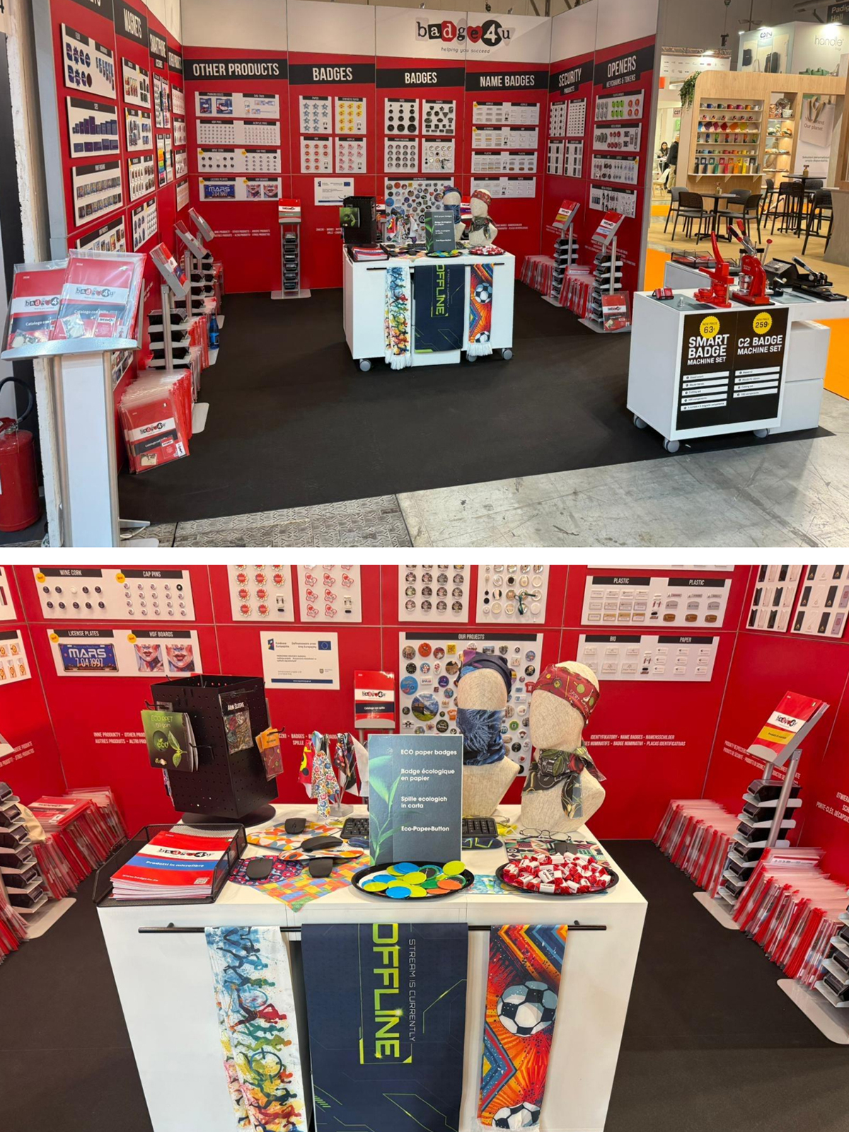 Udział w targach Premium Sourcing 2025 w Paryżu, PSI 2026 w Dusseldorfie, PTE 2026 w Mediolanie oraz CTCO 2026 w Lyonie pozwolił firmie na zaprezentowanie dotychczasowej oferty produktowej w postaci artykułów reklamowych (znaczki okolicznościowe, identyfikatory, magnesy, breloki, camera blocker, cardguard, produkty wielofunkcyjne, urządzenia i komponenty do produkcji znaczków, produkty z mikrofibry, inne drobne produkty) oraz nowego produktu w postaci eko-znaczka kartonowego.